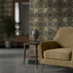 This richly detailed wallpaper design features an intricate, faux bas-relief geometric motif inspired by antique metalwork. A striking mix of aged iron tones and warm antique gold gives the pattern a sophisticated, time-worn elegance, with raised contours that create beautiful depth and shadow. The repeating star and floral-inspired shapes bring a sense of symmetry and artistry, making this an eye-catching choice for an industrial loft or room accent wall. Search ID1227 to see other metallic geometric designs in this series. Note: design adapted from generative content.