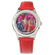 Kinderuhr aus Edelstahl mit rotem Lederarmband