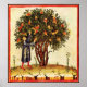 Alte mittelalterliche italienische Miniatur von wunderschönem Granatapfelbaum .Klassische Landschaft..Teil von " Früchte der Jahreszeit ".Dieses elegante Design mit alten braunen Pergamenteffekten-Es ist perfekt für Ernährungswissenschaftler,Diätetiker,Caterer, Gastronomie,Zubereitung oder Restaurant,Catering Industrie.