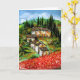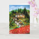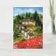Toskana Landschaft, farbenfrohe, lebendige, ausdrucksvolle Schönheit der italienischen Landschaft und Felder in leuchtend rot, grün, gelb, braun, blau, weiß, wunderschöne Sommerflora, Pfeffer, Wiesen, Blume, Zypressen und Olivenbäume, rustikales altes Bauernhaus unter dem blauen Himmel und Wolken .Acrylmalerei auf Leinwand .
