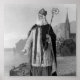 Saint Patrick, der die Schlangen aus Irland ein Bild, das ihn als Bischof mit der Bibel, Schlangen und die Kirche in der Szene gekleidet. Vintage-Bild im öffentlichen Bereich.