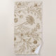Antique Sepia Botanical Line Art Floral Pattern Beach Towel