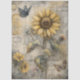 This antique sunflower composition feels like something rediscovered — softly worn ink, the whisper of distant music, old postage stamps and butterflies captured mid-flight. Created for artists who tell stories through paper — for journals that feel lived in, keepsakes that hold emotion, and creations meant to feel like something once loved long ago.