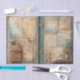 Step back in time with this intricately layered vintage decoupage paper, designed to look like an open explorer's trunk or travel journal. The composition features an antique world map, a rustic leather satchel, a classic retro camera, and delicate handwritten notes paired with dried yellow wildflowers. This design is perfect for upcycling vintage suitcases, creating museum-style scrapbook pages, or adding a sophisticated industrial or dark academia touch to your DIY home decor.