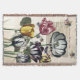 Ein schöner Vintager Remix aus Tulpen und Kalligraphie auf einer schönen dekorativen Fliesendecke. Eine zeitgenössische, digitale Collage aus wunderschönen Blume, Honigbienen und einem süßen Singvogel auf handgezeichneter Kalligrafie. Ein wirklich einzigartiges und besonderes Design. Die eklektische Dekoration fügt sich perfekt in die Welt ein. Ein Geschenk für die Liebhaber antiker Typografie, Vintager botanischer oder religiöser Kunst.
