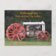 Denken Sie an Sie über die Meilen hinweg. Antiquitätentraktor in Silber mit großen roten Rädern auf einem Vorderrasen in NJ. Original Fotografie © TamiraZDesign.