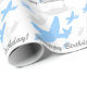 Personalisieren Sie die Nachricht auf diesem grauen und blauen Vintagen Papier für die grafische Verpackung des Flugzeugs.