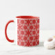 Tasse in einem digital verbesserten und farbigen Muster, basierend auf antiker Spitze - tiefer Lippenstift auf weißem Hintergrund