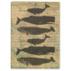 Basierend auf antiken Zeichnungen von Walen, ist dies eine rustikale Walkunst Collage mit Walen, Moby-Text und alte Karte im Hintergrund.