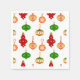 Papierservietten in einem Muster verschiedener antiker Weihnachtsbaumschmuck, in tiefrot, dunkelgrün, weichem Gold und Rosa, auf weißem Hintergrund