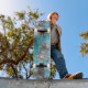 Antiquitätentauchhelm mit Wellen im Hintergrund