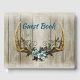 Das Gästebüro für Ihre Hochzeit beinhaltet eine rustikale Antlers und eine cyan blaue Rose Szene für den Jäger und seine Braut.