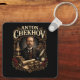 An ornate vintage portrait of Anton Chekhov surrounded by books, manuscripts, and theatrical symbols celebrating his legacy as a master playwright and storyteller.