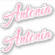 Antonia Name in kursiven Skript-Schriftart in hübsch rosa x2. Zwei Kopien des Namens.