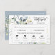 Die Posterkarte für Hochzeitsfeiern mit 4 Wahlmöglichkeiten bietet einen eleganten, modernen minimalistischen Stil mit Blätter aus gröberem Blattwerk und wunderschöner Kalligraphie und Schriftart aus reiner und serifenloser Typografie auf staubblauem Hintergrund. Die Einfachheit und das saubere Design dieser RSVP Response Gehäuse Karte funktioniert gut mit allen Hochzeitsthemen und definitiv eine großartige Ergänzung zu Ihrer Hochzeit. Passen Sie einfach die Namen, das Datum, die Optionen für 4 Mahlzeiten und andere Informationen in ein paar einfachen Schritten an und personalisieren Sie es, um ihm eine angenehme persönliche Touch zu geben. Ikonen für die Mahlzeiten: Truthahn, Gans, Wild, Ente, Lamm, Schwein, Rind, Huhn, Meeresfrüchte und Vegetarier. Wenn Sie die Essenssymbole ändern möchten, klicken Sie auf die Schaltfläche "Bearbeiten mit dem Design-Tool", um die Essensoptionen zu personalisieren. Bitte beachten Sie: Die eleganten Schriftzeichen mit den Worten "freundlich reagieren" und "freundlich liefern", zusammen mit den Aquarellblättern eucalyptus Blätter Arrangements und anderen grafischen Artwork-Elementen wie den Linien und Rechteck Boxen können nicht bearbeitet, verändert, verschoben oder gelöscht werden. Sie sind repariert.