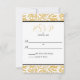 Eine elegante Gold- und Black Wedding Response Card, die mit einem goldfarbenen Stift auf weißem Hintergrund entworfen wurde. Der erste Text enthält: Die Antwort nach Datum und Platz für Gäste, ihre Namen einzutragen. Die Rückseite ist ein schwarzer Hintergrund. Um Ihre persönlichen Daten zu personalisieren, fügen Sie einfach Ihre Daten in unsere einfache Vorlage ein und ersetzen den Beispieltext. Vergewissern Sie sich, dass Sie die gesamte Hochzeitskollektion im Gold- und Black-Elegant-Stil sehen.