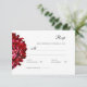 Marsala Red Chrysanthemum auf einer einfachen rsvp Karte. Die verzierte Kalligraphie hebt einige Details hervor, aber die Karte bleibt elegant und raffiniert.