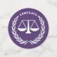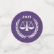Creative Law School Graduation Party Dekoration für Rechtsanwalt Abitur mit kreativen Waagen der Justiz und Glückwünsche auf lila Hintergrund. Um Text zu personalisieren, um Namen hinzuzufügen, ändern Sie das Jahr oder ändern Sie es auf andere Weise.