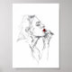 Ein auffallendes abstraktes Porträt einer Frau, die einen lebendigen roten Lippenstift anbringt. Die Skizze ist in erster Linie schwarz-weiß, nur Lippen und Lippenstift sind fett rot gehalten, was Eleganz, Selbstbewusstsein und künstlerischen Ausdruck unterstreicht. Ideal für Kunstliebhaber, Mode-Liebhaber oder für diejenigen, die zu modernen minimalistischen Porträts gezeichnet sind.