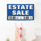 Ein beruflich aussehendes Anwesen-Verkaufszeichen mit Zeiten.