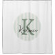 Add a fresh, personalized touch to your bathroom with this elegant sage green, ivory, and charcoal monogram shower curtain. The design features a soft striped oval background with a classic initial and custom name layered in refined typography, creating a look that is both modern and timeless. Clean white space keeps the design feeling bright and sophisticated while allowing the monogram to stand out beautifully. Perfect for guest bathrooms, dorms, or a personalized home refresh, this shower curtain can be fully customized using Zazzle’s design tool. Simply edit the initial, name, and colors to create a look that perfectly suits your space.