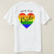 Dieses T-Shirt weist die Farben der Regenbogenflagge in einem Herzen auf, wobei das Wort "Pride" im Inneren steht. Über dem Herzen steht der Text "ZEIGEN SIE IHR". Die Vorderseite des Shirts hat eine kleine Version des Designs, während eine größere Version auf der Rückseite ist. Dieses Shirt ist sowohl für Männer als auch für Frauen in Größen erhältlich.