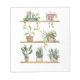 Anzeige gepunkteter Pflanze. Drei Reihen getöpfter Pflanze auf Regalen. Handgemalte Wasserfarben.