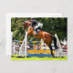 Ein fotografisches Design von Pferd und Reiter in einem Showspringwettbewerb.