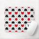 Nahtlose vier Kartensymbole gestalten die Illustration mit schwarzem Rhombus und der Punktdekoration auf weißem Hintergrund. Es ist einfach, den Namen zu ändern und zu personalisieren.
