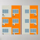 Die Außenfassade eines Gebäude mit vielen Fenstern. Dieses Design sieht wirklich effektiv aus auf diesem Poster