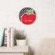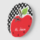 Apfel auf schwarzen und weißen Polka-Punkten Große Wanduhr