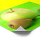 Apfel & Birne mit fluoreszierendem grünen Hintergrund.