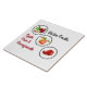 Apple, Pear & Pomegranate Design. Jedes Fruchtsymbol ist in einem weißen Kreis mit einem schwarzen Rahmen. Die Wörter "Winterfrüchte" sind in der oberen rechten Ecke in schwarzem Text geschrieben, um den Rahmen des Kreises anzupassen. Jede einzelne Frucht ist in Rot mit einem leicht abfallenden Schatten entlang der links Grenze zum Borrom aufgeführt. Sauberes, puristisches Design. Perfekte Keramik für Ihre Winterküche!