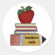 Apfel, Bücher, Bleistift-Lehrer-Rock Runder Aufkleber