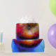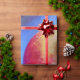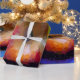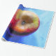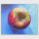 Ein Kunstdesign eines Apfels vor blauem Hintergrund.