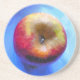 Ein Kunstdesign eines Apfels vor blauem Hintergrund.