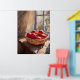 Dieses lebendige impressionistische Gemälde beherbergt einen Korb frisch gepflückter Äpfel, die von einem nahegelegenen Fenster aus in warmer Sonne baden. Die kräftigen roten Farben der Äpfel kontrastieren wunderschön mit dem sanften, natürlichen Licht und schaffen ein Gefühl von Wärme und Überfluss. Inspiriert von der Beherrschung von Licht und Textur des Impressionismus, bringt dieses Kunstwerk eine Touch der Schönheit der Natur in jeden Raum und macht es perfekt für Küchendekoration oder rustikale Wohnräume. Die sanften Pinselstriche und die leuchtenden Farben erinnern an Gefühle der Einfachheit und Ruhe, die es zu einer idealen Wahl für Kunstliebhaber und diejenigen machen, die die Schönheit des Alltags schätzen. Erhältlich in verschiedenen Formaten für vielseitige Dekorationsoptionen.