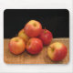 Dieses mousepad kennzeichnet eine sehr einfache Stilllebenzusammensetzung von sechs schönen glänzenden roten und gelben Äpfeln auf einer Strohmatte gegen einen schwarzen Hintergrund.