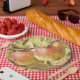 Eine Aquarellfarbe von Äpfeln, die auf dem Baum reifen.