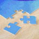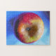 Ein Kunstdesign eines Apfels vor blauem Hintergrund.