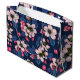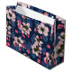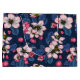 Handgezeichnete Apfelblüten und Bienen auf dunkelblauem Hintergrund