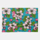 Handgezeichnete Apfelblüten und Bienen auf türkisfarbenem Hintergrund