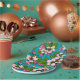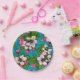 Handgezeichnete Apfelblüten und Bienen auf türkisfarbenem Hintergrund