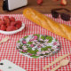 Handgezeichnete Apfelblüten und Bienen auf weißem Grund