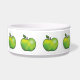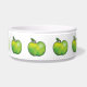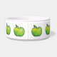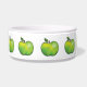 Desteis Cartoon Illustration einer grünen Apfelfrucht mit einem kleinen Blatt am Stiel. Das Design ist so platziert, dass es um die Schüssel geht. Niedliches Design für ein Tier mit dem Namen "Apple", zum Beispiel.