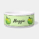 Desteis grüner Cartoon Äpfel auf einem hellgrünen Hintergrund. Es gibt auch einen personalisierbaren Textbereich für einen Namen im schwarzen Schriftart. Oben und unten haben auch einen dünnen schwarzen Rand.
