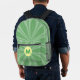 Nützlicher Rucksack mit strahlenden apfelgrünen Streifen überall. Wie ein riesiger, staubiger blauer Sonnenbrand. Es ähnelt der Art-die, aber das ist es nicht. Enthält sehr blassgelb, Kreis in einem Fraktal. Im Kreis befindet sich ein grüner Initial. Sie können das Monogramm auf Ihre eigene Person oder die Person anpassen, die Sie dem Rucksack geben möchten.