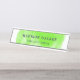 Ein auffälliges und trendiges Design in kräftigen Farben. Stilvolle Namensschild für Ihren Schreibtisch mit minimalistischem Typografie-Design. Fügen Sie Ihren Namen und Job-Titel in eleganten marineblauen Schriftart gegen einen Apfelgrauen Aquarell hinzu.