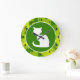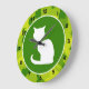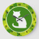 Apfelgrüne Camouflage; Weiße Katze Große Wanduhr
