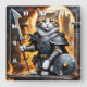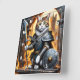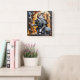 Apfelkatze im Rüstungslager mit Schwert und Schild Quadratische Wanduhr